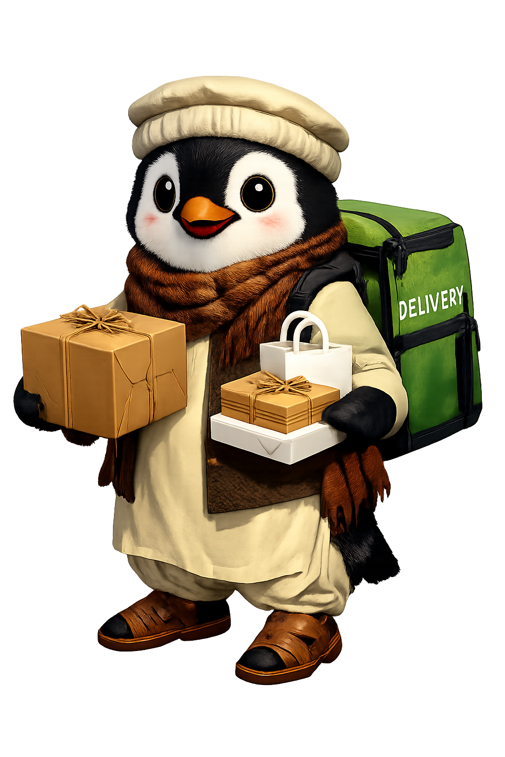 Our friendly penguin isn't just cute — he's on a mission to make your life easier, one happy delivery at a time.